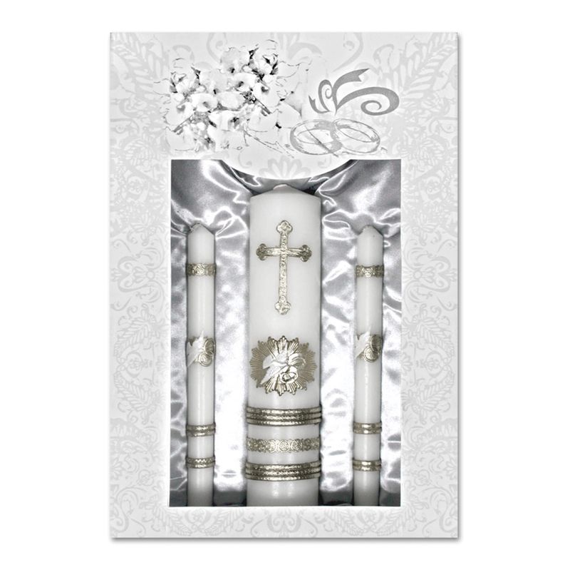 Wedding Unity Candle Set with Silver Base Candle Set (4pcs)