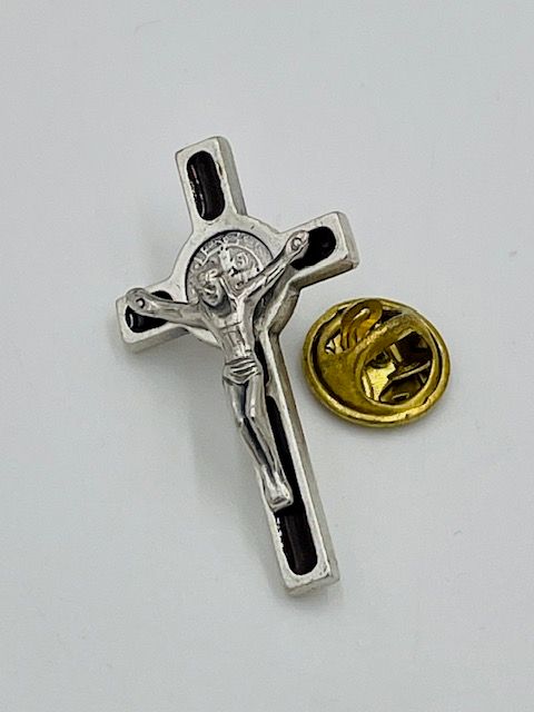 St Benedict Medal Cross Lapel Pin (Silver)
